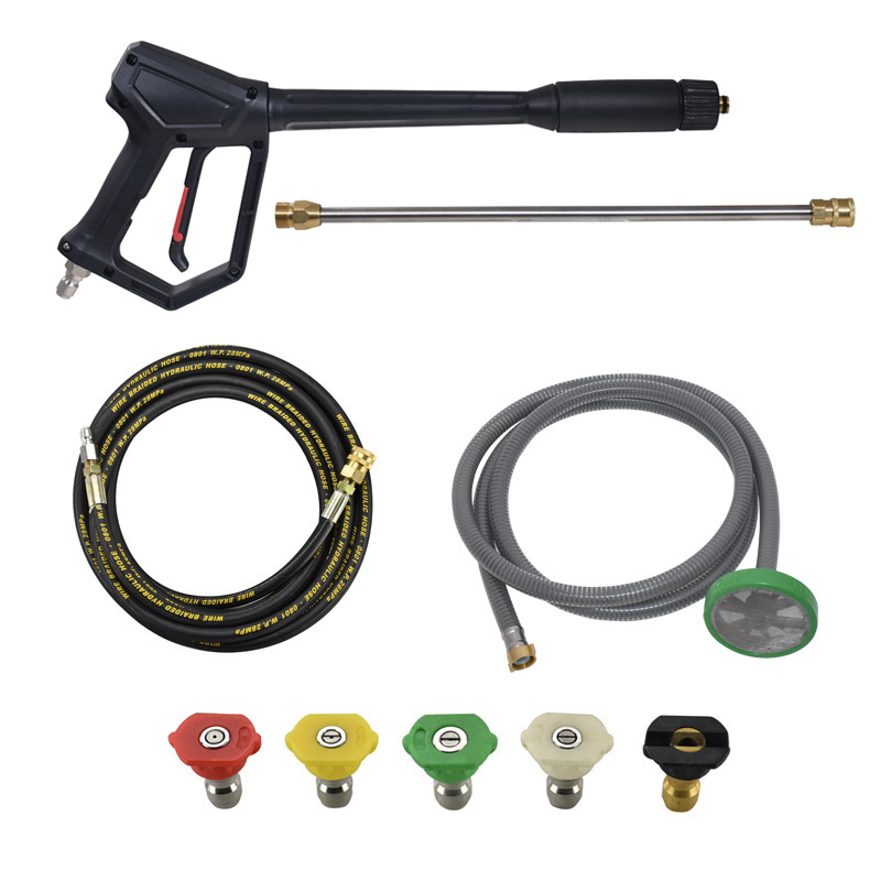 - Με πλήρη εξοπλισμό: επαγγελματικό πιστόλι με σκανδάλη ασφαλείας, σωλήνα υψηλής πίεσης 10 μέτρων- BRAIDED, σωλήνα αναρρόφησης απορρυπαντικού 1 μέτρο , ακροφύσια (0°, 15°, 25°, 40° (D.1,0 mm) και μπεκ απορρυπαντικού), σωλήνας 3 μέτρα αναρρόφησης από δεξαμενή με φίλτρο