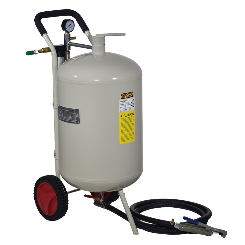 Τροχήλατο Δοχείο-Αμμοβολή Υψηλής Πίεσης με Οφέλιμο Χώρο 66 LIT, Κατάλληλη για Χρήση με Κάθε Λειαντικό Υλικό που Καλύπτεται από τους Κανονισμούς COSHH με Κοκκομετρία 40/80 με Πιστόλι και Σετ 4 Μπέκ