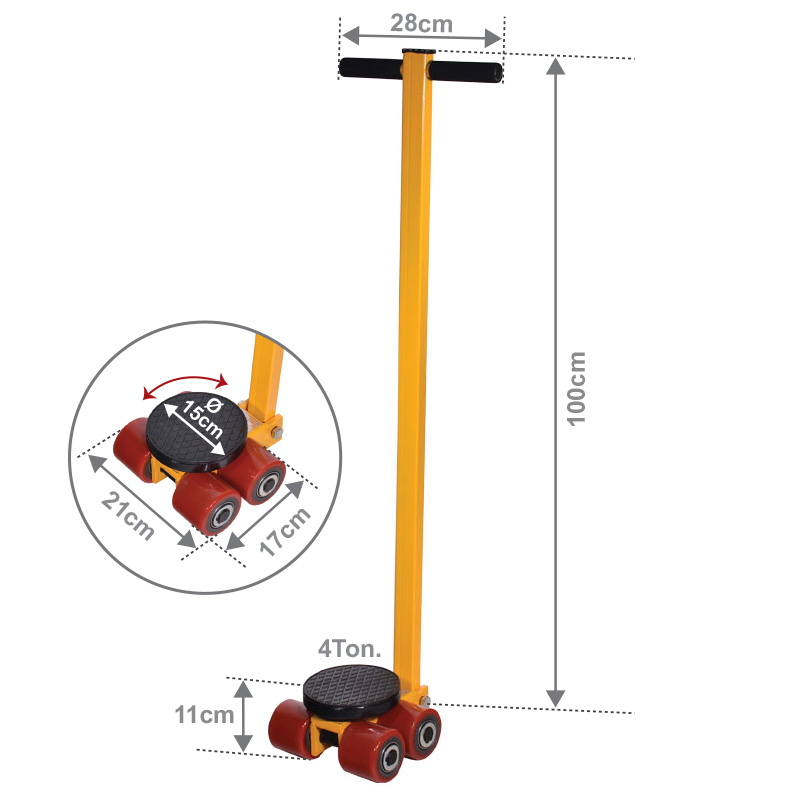 Φορείο με Περιστρεφόμενο Πέλμα και Τιμόνι για Μεταφορα 4 Τόνων με Ράουλα PU με Ρουλεμάν .