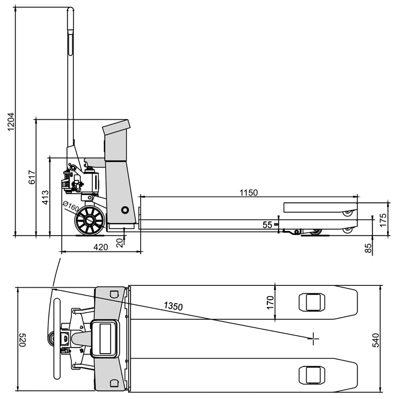 Παλετοφόρο ικανότητας 2.5 ton με αντλία βαρέως τύπου και πλήρη ηλεκτρονικό μηχανισμό ζυγίσματος για ακριβέστερο ζύγισμα .