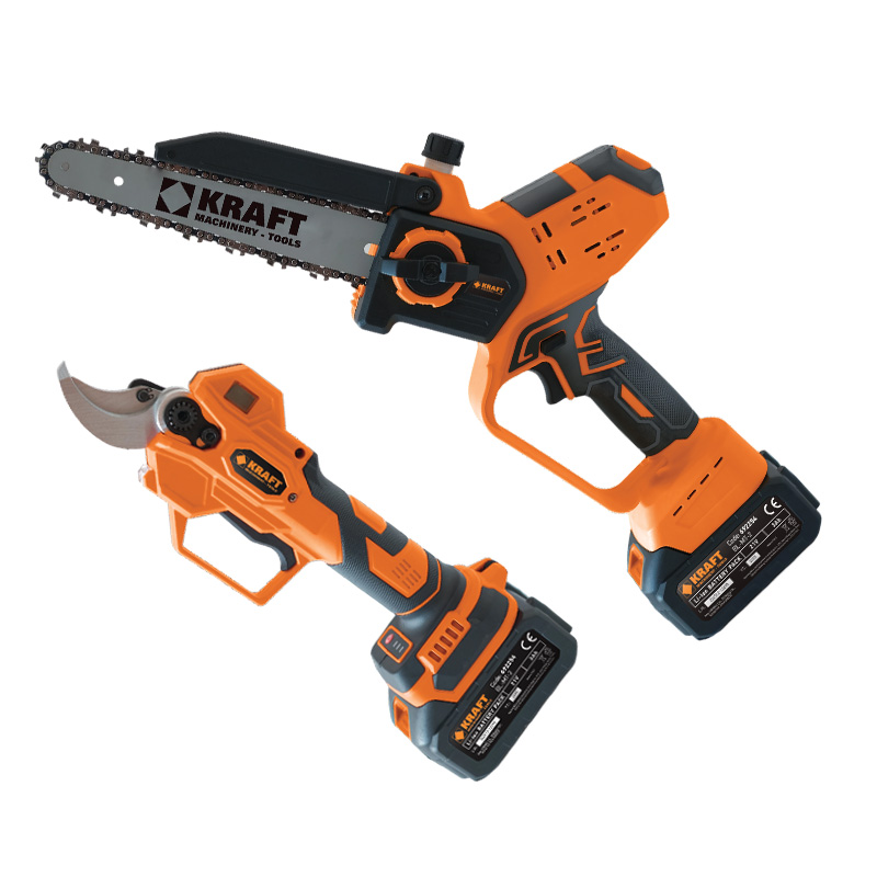 Σετ Δύο Εργαλείων KRAFT: Ψαλίδι Κλαδέματος 691173Β Μπαταρίας με μέγιστη διάμετρο κοπής 40mm & Κλαδευτικό Αλυσοπρίονο 691173Α Μπαταρίας με Λάμα 20cm .