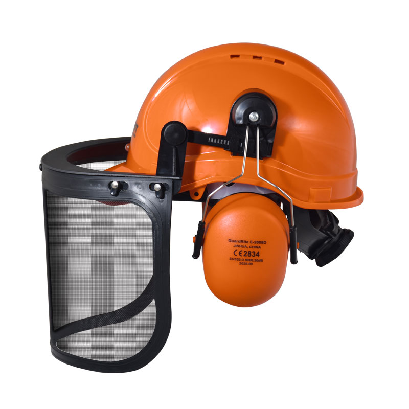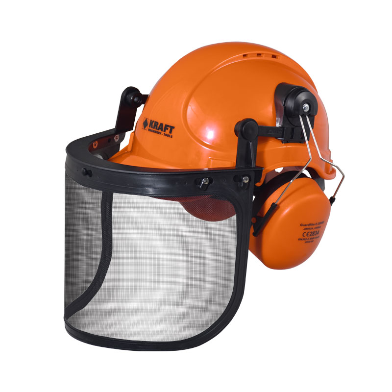 Σετ Ανθεκτικό Κράνος με Συρμάτινη Προσωπίδα με Ανάκλιση, Ωτοασπίδες με Ηχομόνωση SNR 30 dB και Ιμάντες Στήριξης 6 Σημείων . Ιδανικό για Δασοκομικές Εργασίες . Κατασκευασμένη με το Πρότυπο EN397:2012+A1:2012 / ISO 16321-3:2022 / EN352-3:2020 .