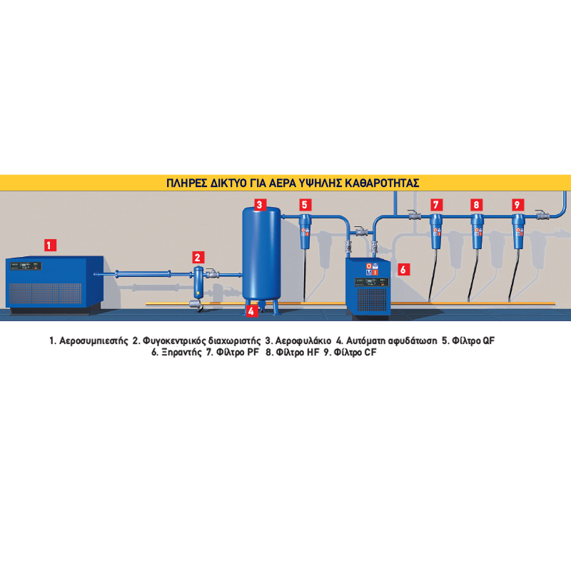 Η εταιρία OMI είναι μια από τις μεγαλύτερες κατασκευάστριες εταιρίες συστημάτων βελτίωσης του πεπιεσμένου αέρα στην Ευρώπη με πολυετή εμπειρία στο χώρο. Τα μηχανήματα της ενότητας αυτής είναι απαραίτητα γιατί ο ατμοσφαιρικός αέρας που αναρροφάται από τους αεροσυμπιεστές περιέχει υδρατμούς. Μετά τη συμπίεση το 75% των υδρατμών υγροποιείται και αρχίζουν να σχηματίζονται σταγονίδια νερού τα οποία καταλήγουν στο δίκτυο εάν δεν απομακρυνθούν. Η υγρασία αυτή είναι η αιτία για: • Φθορές και διάβρωση των μηχανημάτων και εργαλείων που χρησιμοποιούν πεπιεσμένο αέρα • Υψηλότερο κόστος συντήρησης, περισσότερες βλάβες και χαμένες ώρες παραγωγής • Ελαττωματικά και χαμηλής ποιότητας προϊόντα (ιδιαίτερα στις βαφές στην επιπλοποιία, φανοποιία κτλ.). Με τη χρήση μεταψυκτών, διαχωριστών και φίλτρων είναι δυνατόν να μειώσουμε μερικώς την περιεκτικότητα του αέρα σε υγρασία αλλά μόνο με την προσθήκη ξηραντών, οι οποίοι κατεβάζουν την θερμοκρασία του πεπιεσμένου αέρα στους 3°C, είναι δυνατόν να περιορίσουμε στο ελάχιστο την υγρασία.