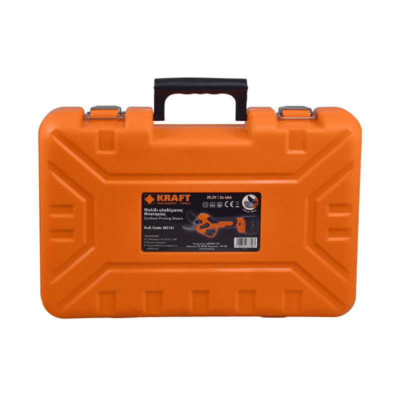 Ψαλίδι Κλαδέματος Μπαταρίας με μέγιστη διάμετρο κοπής 45mm, επιλογή Προοδευτικής Κοπής, ισχυρό επαγωγικό (brushless) μοτέρ 25,2 Volt, 2 Μπαταρίες Λιθίου ( 4Ah) και φορτιστή ταυτόχρονης φόρτισης 2 μπαταριών. (Δυνατότητα τοποθέτησης σε προέκταση)
