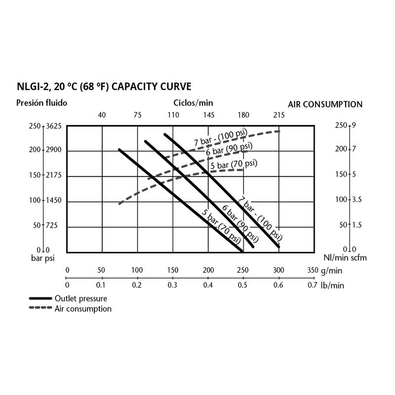 - Μέση κατανάλωση αέρα 165 lt/min @ 6 bar , 110 cycles/min , NLGI 2